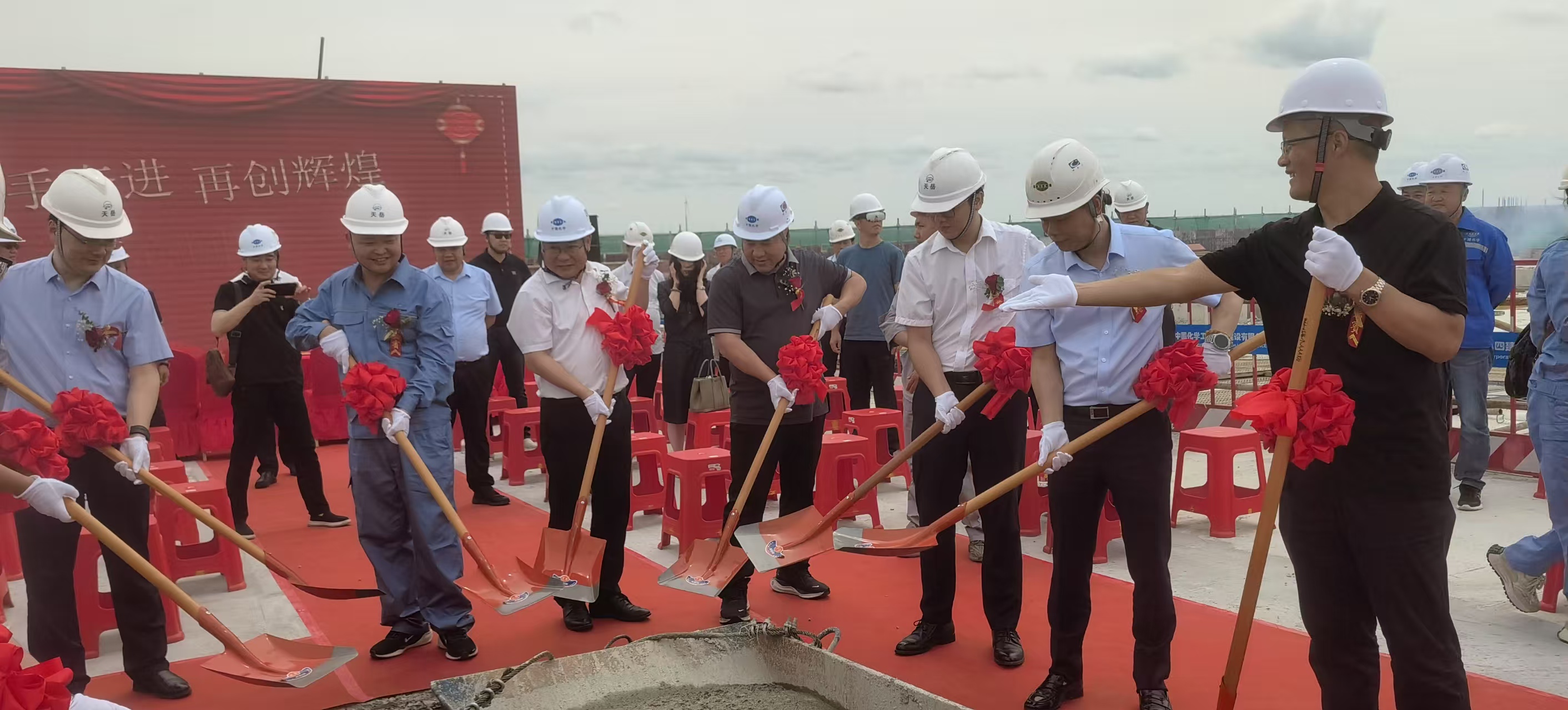 篤舜集團董事長岳彩民受邀參加天岳(天門)新材料科技有限公司30萬噸/年尼龍6聚合裝置主廠房封頂儀式并致詞